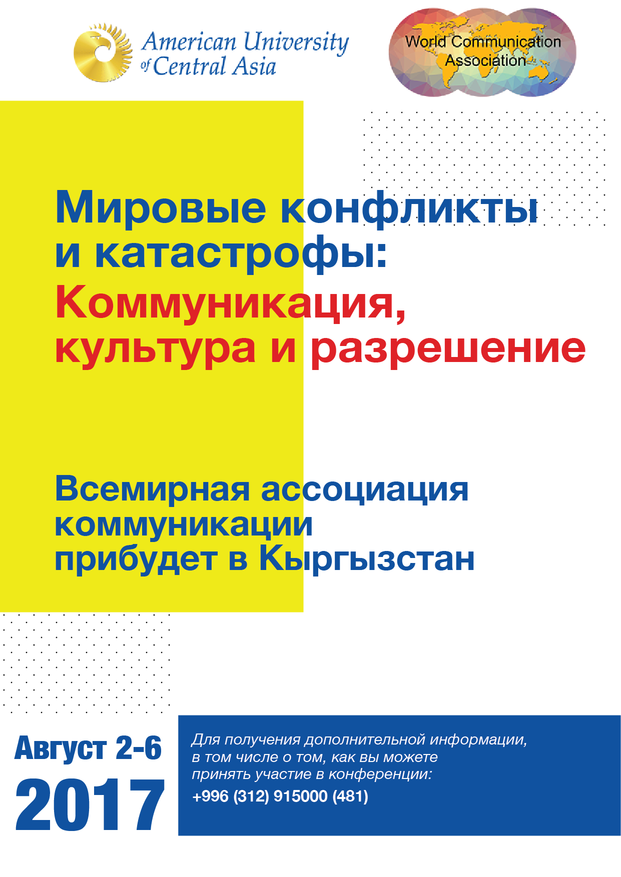 Для получения дополнительной информации, в том числе о том, как вы можете принять участие в конференции: +996 (312) 915000 (481)
