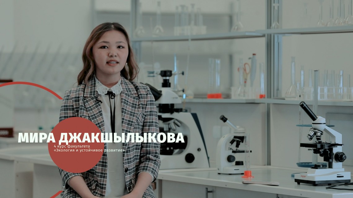 Студентка 4 курса факультета «Экология и устойчивое развитие» Мира Джакшылыкова рассказывает почему она решила стать экологом, что дало ей обучение в университете, и о планах на будущее.