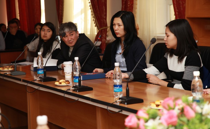 Преподаватели департамента "Международное и бизнес право" Элида Ногойбаева, Камила Матеева и Мишель Лейтон провели совместно с Президентом Ассоциации Фулбрайтовцев Кыргызстана Русланом Мырзалимовым серию презентаций хрестоматии по действующему международному праву в Кыргызской государственной юридической академии, Кыргызско-Российском славянском университете и Кыргызском национальном университете.